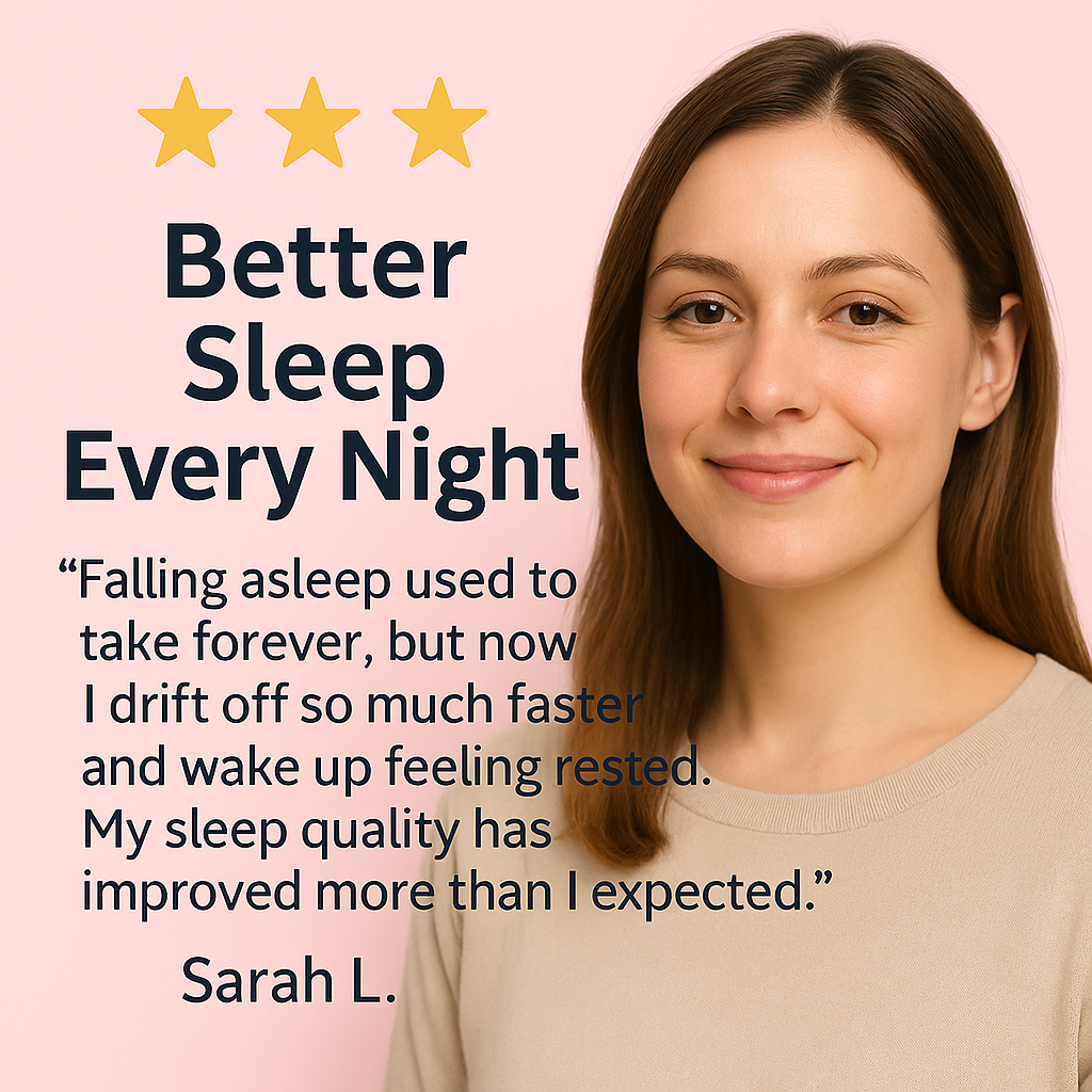 Reported falling asleep faster and staying asleep longer — with fewer night awakenings and less restlessness.