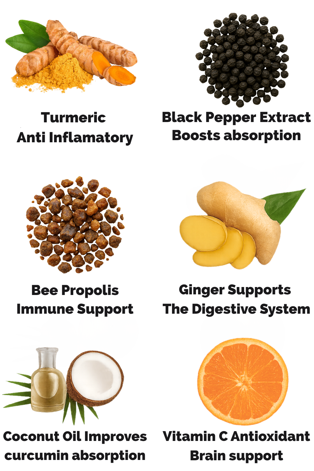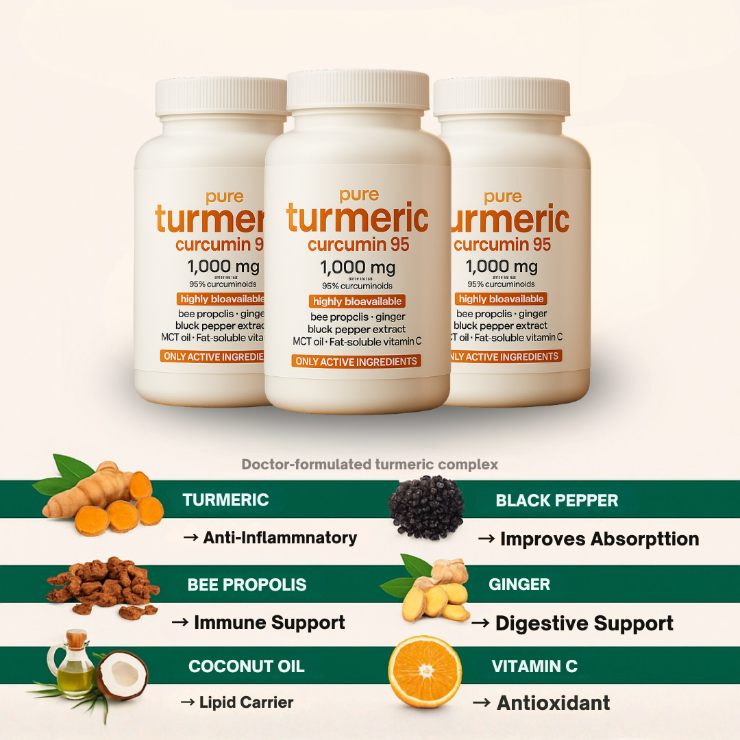 Curcumin (the active compound in turmeric) is notoriously hard for the body to absorb. That’s why we include a patented black pepper extract proven in clinical studies to boost absorption by up to 2000%.